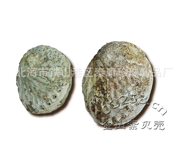 耳鮑:狹長,略扭曲,呈耳狀,長5~8cm,寬2.5~3.5cm,高約1cm。表面光滑,具翠綠色、紫色及褐色等多種顏色形成的斑紋,螺旋部小,體螺部大,末端5~7個開孔,孔口與殼平,多為橢圓形,殼薄,質(zhì)較脆。