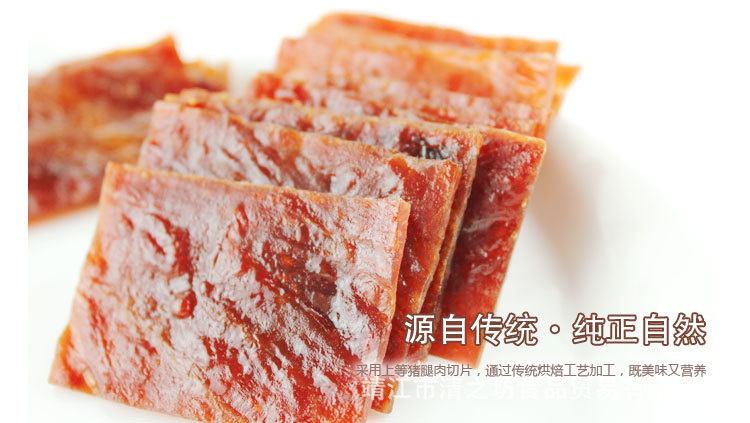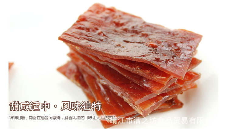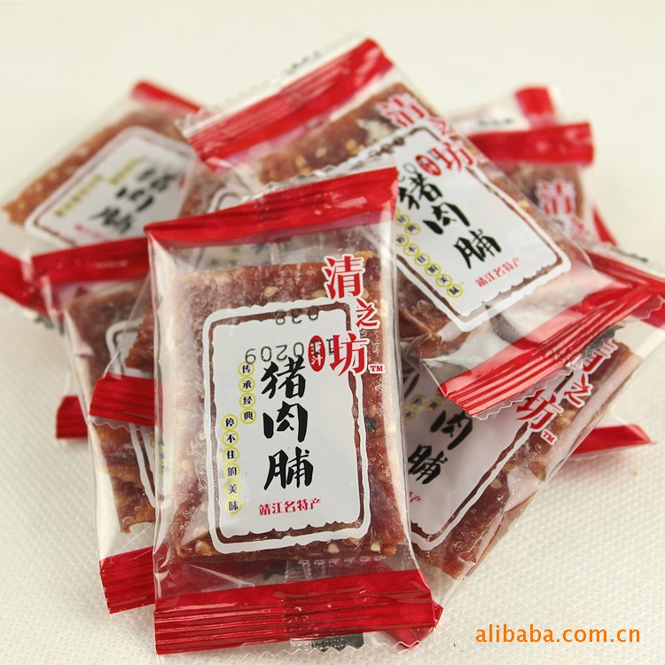 來自清之坊的新鮮現(xiàn)烤蜜汁豬肉脯,刷蜂蜜烤的,比市場上賣的要稍微甜點(diǎn),但是也更香,每塊都標(biāo)準(zhǔn)的切成5厘米的小方塊,然后半斤一袋包裝,屬于豬肉脯里的精品肉脯,非市場上的工廠肉脯所能媲美。