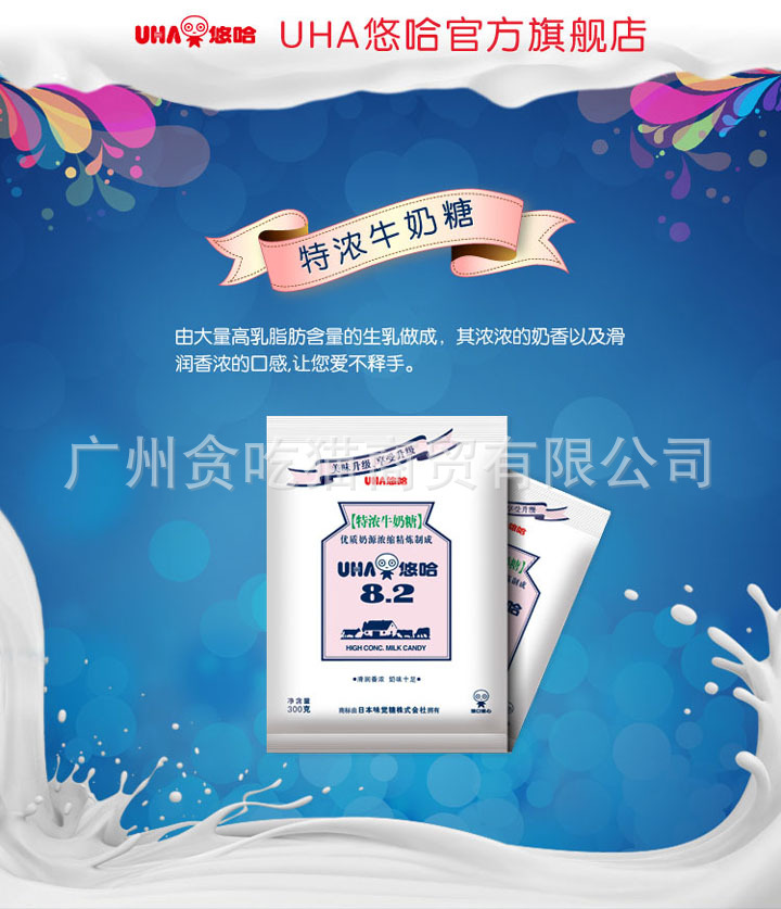原裝的UHA特濃牛奶糖不像一般的糖那么甜,它的牛奶味很濃,吃過以后唇齒留香…適合隨身攜帶,在辦公室里忙里偷閑的拿一粒出來,哪怕只有幾分鐘,也可以讓疲憊的身心在UHA的世界里暫時(shí)放輕松(*^__^*) 嘻嘻……