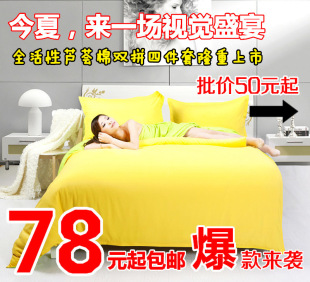 特價(jià)家紡防螨抗菌全活性蘆薈棉純色雙拼四件套床上用品春夏床品