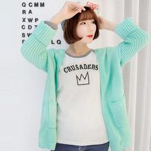 爆款秋季新款 毛衣女 韓版純色拼接休閑針織衫開衫 原單女裝外套33.00