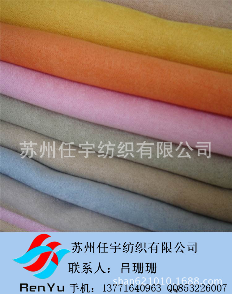 本公司專業(yè)生產(chǎn)麂皮絨系列的家紡與服裝面料,日產(chǎn)麂皮絨10萬米。麂皮絨,其特點(diǎn)為布面毛感細(xì)膩類似動(dòng)物毛皮,面料本身輕薄透氣,經(jīng)向麂皮絨(105D*150D、105D*200D、105D*300D、105D*400D、105D*600D)、緯向麂皮絨(75D*225D、75D*225*2、75D*160D、75D*180D)、針織麂皮絨、經(jīng)編麂皮絨(50D*75D),成品門幅:110CM—280CM。成品克重:110G/M2---260G/M2。以上各種產(chǎn)品可再次添加各種后整理如:仿水、壓花、復(fù)合TPU膜及T/C底布、透氣透濕、吸濕排汗、刮膠、印花、燙金等。此類產(chǎn)品均為我司主打產(chǎn)品,一直以來廣受國(guó)內(nèi)外新老客戶的認(rèn)可。我們的宗旨是以過硬的品質(zhì)及合理的價(jià)格來滿足每一個(gè)客戶的需求。您的滿意是我們的追求,我將永遠(yuǎn)堅(jiān)持此理念真誠(chéng)的為每一位客戶服務(wù)。各位至高無上的客戶朋友們,我們期待與您早日合作。我司常年承接各類國(guó)內(nèi)外訂單,并且已有自主進(jìn)出口經(jīng)營(yíng)權(quán),敬請(qǐng)廣大新老客戶來電咨詢洽談。