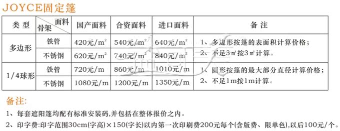 根據(jù)外形及面料的搭配可以制作成各種款式,它既可以遮陽擋雨,實現(xiàn)全天候的保護,而且是商業(yè)上即不貴,又顯目 完美的活招牌。結構簡單大方,遮陽的同時不阻擋風景。