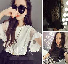2015(加大版) 韓版甜美 網(wǎng)紗鏤空木耳袖拼接短款T恤 女 01-2277¥16.00