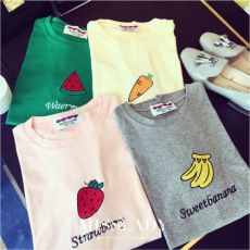 韓國(guó)2015可愛(ài)水果刺繡字母糖果色T恤四色 610-6972¥18.00