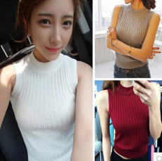 2015韓版春裝新款無(wú)袖T恤上衣 修身高領(lǐng)套頭打底針織背心01-528¥18.00