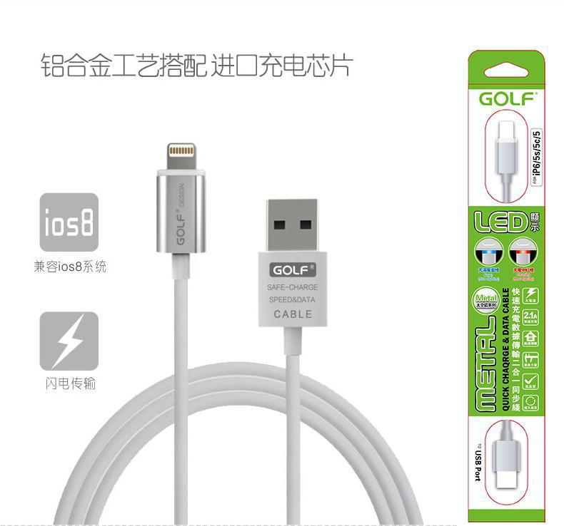 GOLF高爾夫LED發(fā)光 iPhone5/6合金數(shù)據(jù)充電線