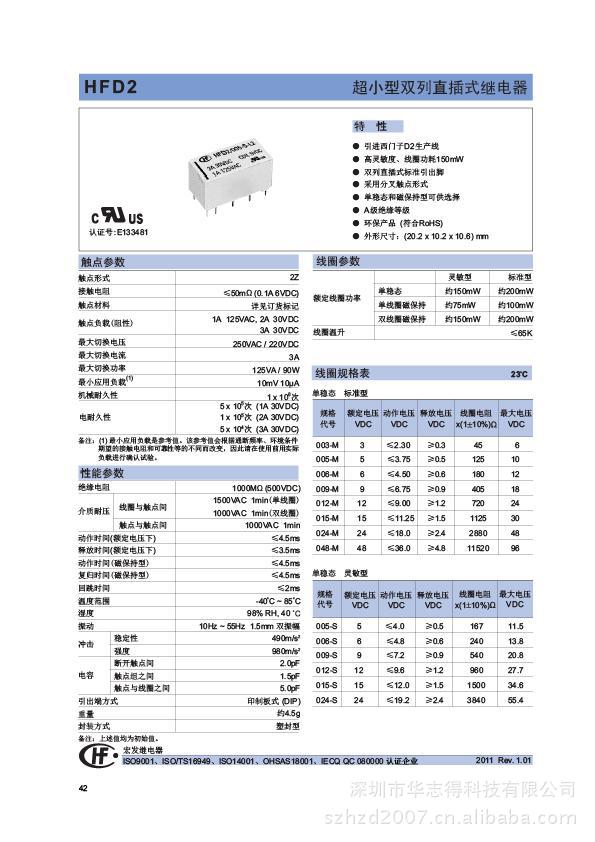 宏發(fā)繼電器 HFD2 優(yōu)勢產(chǎn)品