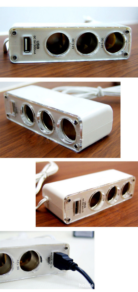 一出三點煙器,線長1M,帶一個USB輸出接口,輸出5V/500mA