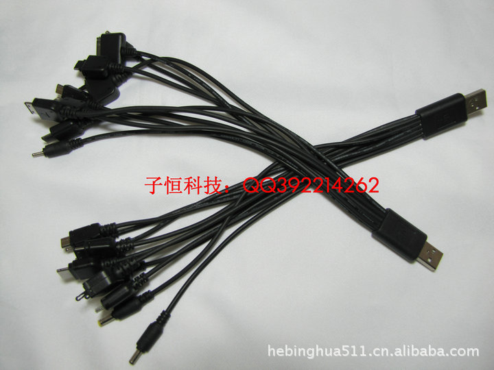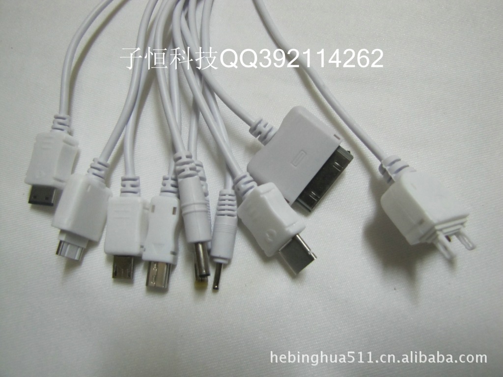 說 明:配10條現(xiàn)在手機的主流充電接口;配合車充頭(或充電頭,或電腦USB),即可實現(xiàn)充電.