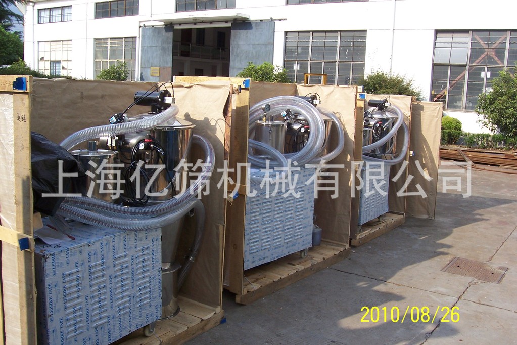我公司生產的真空加料機是在廣泛吸收國外同類產品的基礎上開發(fā)研制的新產品,目前它是國內為先進、理想、完善的粉狀料、粒狀料、粉粒料混合料的真空輸送設備。真空加料機能自動地將各種物料輸送到包裝機、注塑機、粉碎機等設備的料斗中,也能直接把混合的物料輸送到混合機(如V型混合機、二維混合機、三維混合機等)中,減輕了工人勞動強度,解決了加料時粉塵外溢等問題,是制藥廠、食品廠通過GMP認證、促進清潔、文明生產的設備。