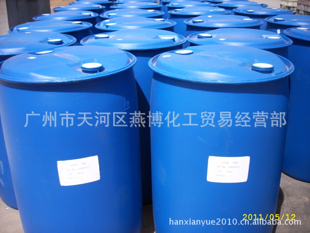 主要用于酯交換反應(yīng),也可用作高強(qiáng)度聚酯漆改性劑,耐高溫料添加劑。醫(yī)用粘合劑,交聯(lián)劑和縮合反應(yīng)催化劑等,200Kg/桶鍍鋅鐵桶