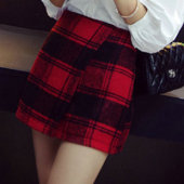 3447 2014秋季新品女裝高腰毛呢不規(guī)則格子一步裙短裙批發(fā)¥21.00