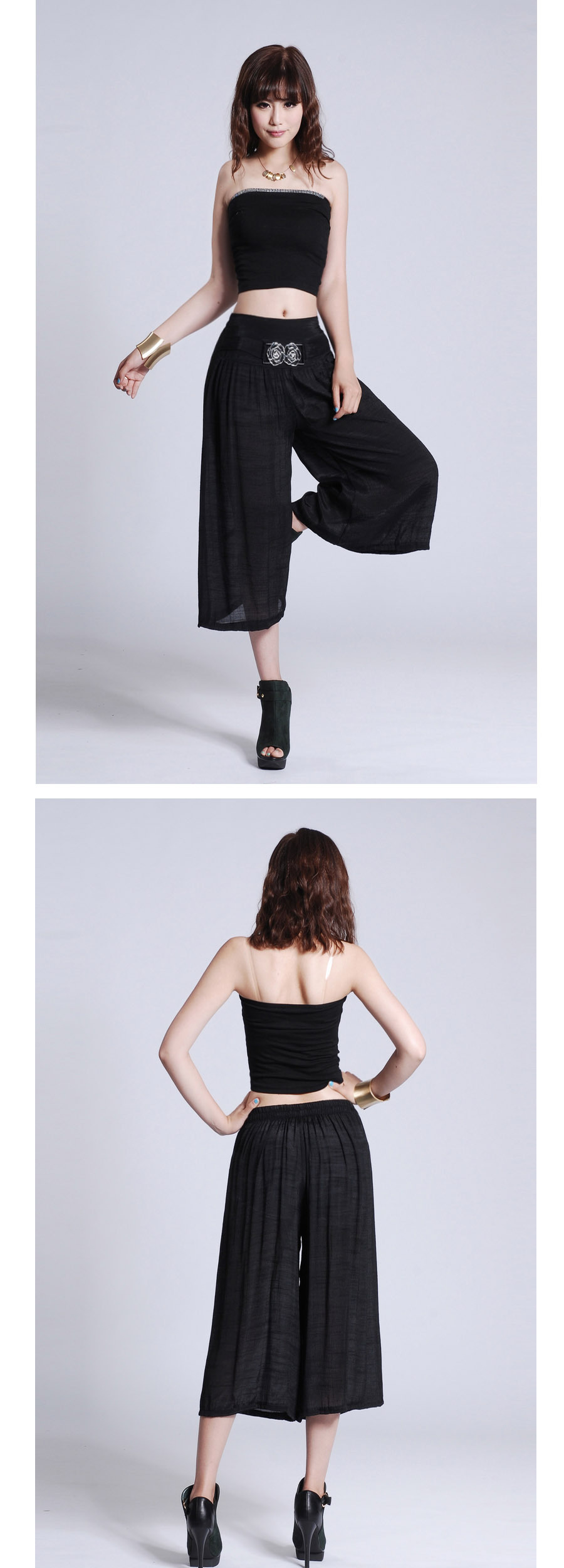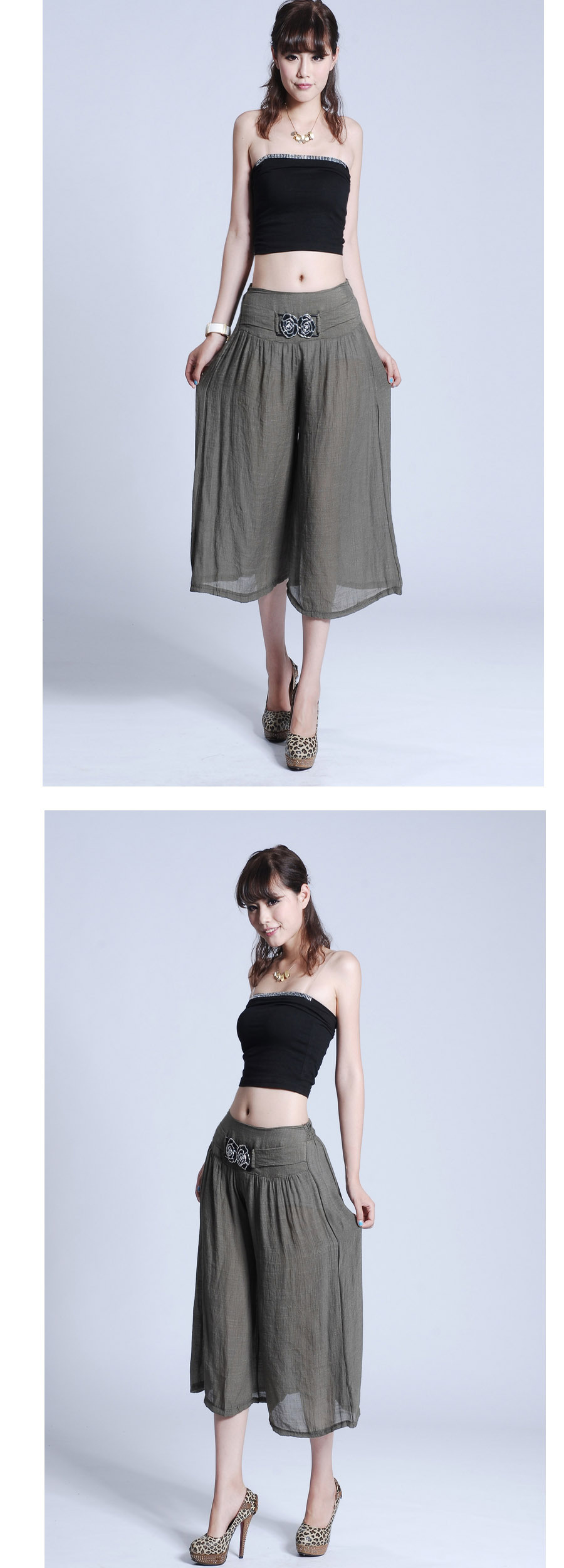 此寶貝特點就是溥而寬松,穿著時尚舒服透氣,面料也是很不錯的棉加麻好面料.寶貝簡單大方適合的年齡跨度很大,只要是成年女性朋友都好穿 產品簡要介紹:清涼夏季 超薄冰絲棉麻闊腿七分褲 裙褲/七分褲裙 休閑燈籠褲