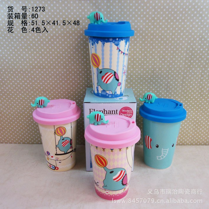 1273款薄荷小象陶瓷杯子 卡通杯子 創(chuàng)意杯子 杯子批發(fā) 馬克杯