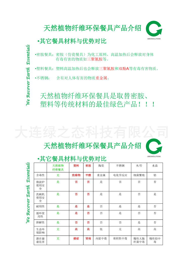 我們?nèi)粘J褂玫牟途咭蕴沾?、玻璃為主,存在不同程度的輻射,且易碎;酒店、餐廳等公共飲食場所則以密氨及硬質(zhì)塑料為主,含有一定的毒素,對人體健康有潛在威脅,且丟棄后對環(huán)境造成危害。