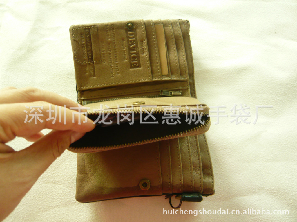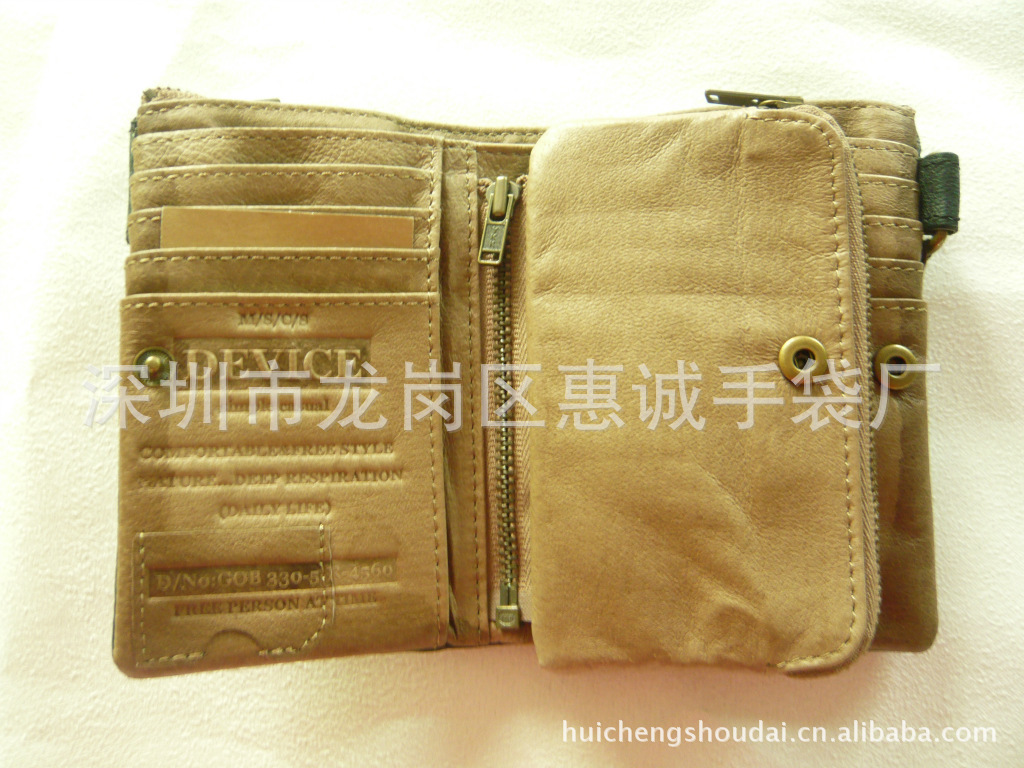 時尚休閑真羊皮錢包、男式錢包、拉鏈短款