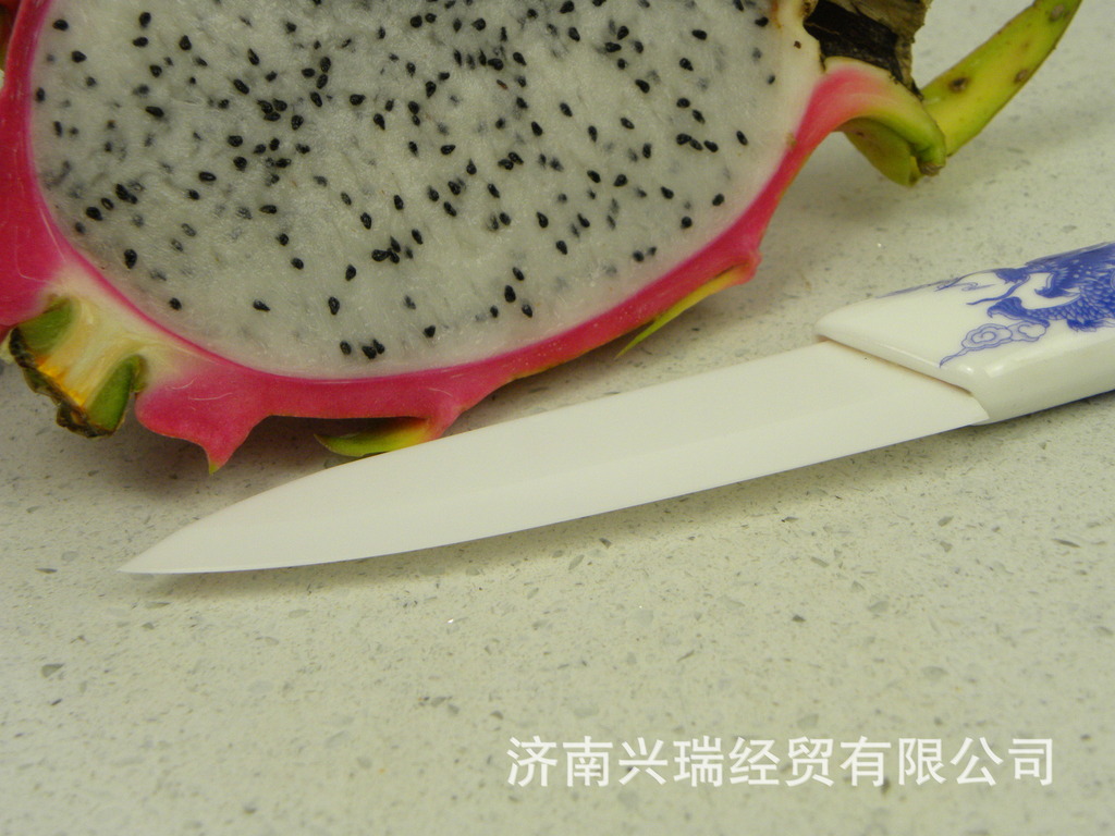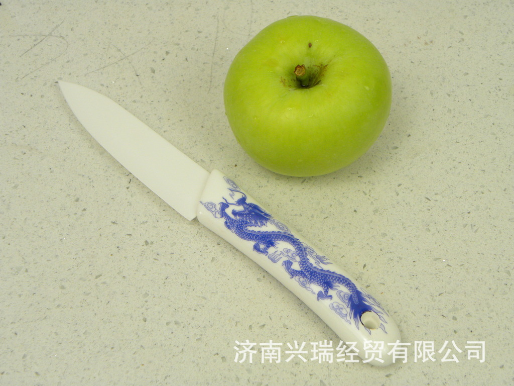 材質(zhì):刀片全采用高科技材料-氧化鋯制作而成;刀柄采用印花瓷材料,圖案清晰、做工精美。美觀、高貴、適用。