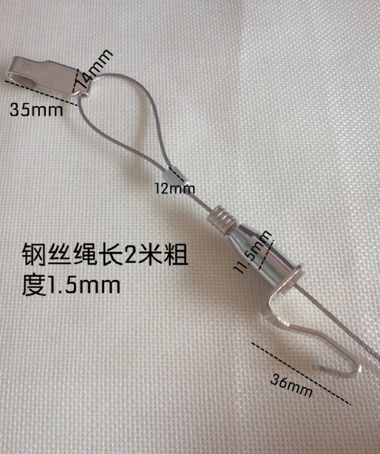 【配置】 :2米單鉤組成配置:鋼絲繩配套掛鉤1個(gè) 鋁夾2只 銅質(zhì)調(diào)節(jié)掛畫(huà)勾1只 1.5mm 鋼絲繩2米