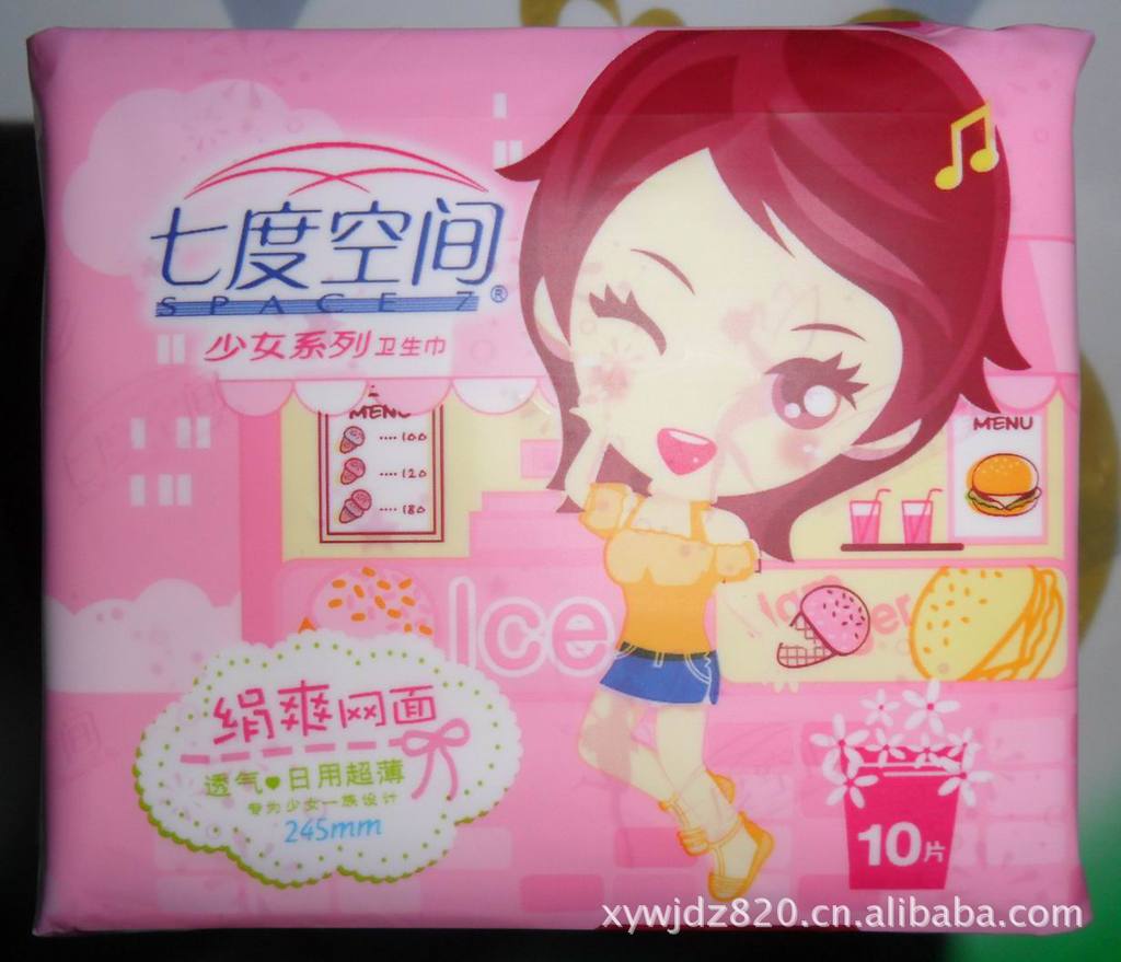 七度空間衛(wèi)生巾批發(fā)QSC7205娟爽網(wǎng)面超薄夜用5片,48包*5片