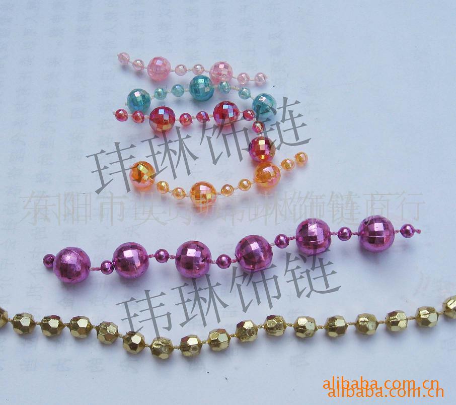 Our factory produces ious decorative chain. Such as: Plastic chain, bicone bead, plastic lobster clasp, steel (rope chain, single chain, double chain, press chain), Leaf chain-mesh chain, aluminum chain, brass chain, anti-curb chain clasp, (alloy lobster clasp, springring clasp), ball chain connector, handmade necklaces and accessories etc.
