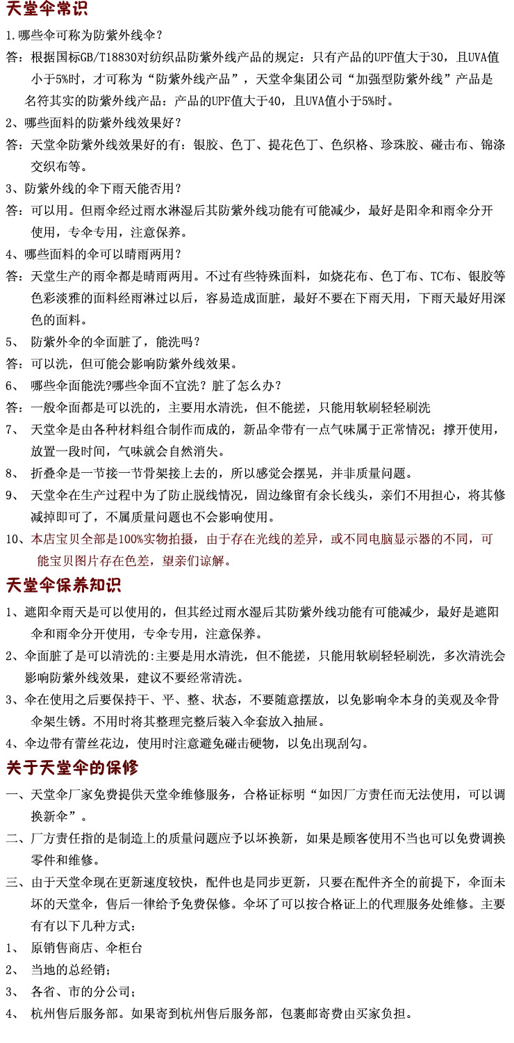 溫馨提示:因生產(chǎn)批次不同,天堂傘不斷升級換代,手柄和部分零件可能與圖片有所不同,