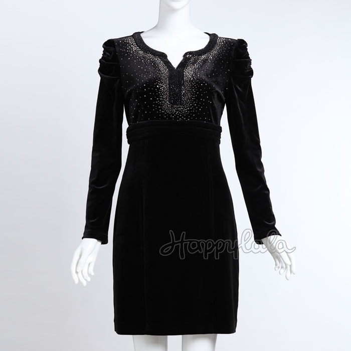 2013春裝新款女裝 優(yōu)雅華麗氣質(zhì)燙鉆顯瘦絲絨連衣裙