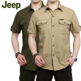 夏季JEEP襯衫男休閑正品時(shí)尚男式短袖 吉普純色修身襯衣純棉半袖