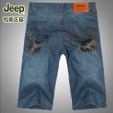吉普牛仔短褲正品中腰男士短褲JEEP商務(wù)休閑男褲直筒男式褲子夏款