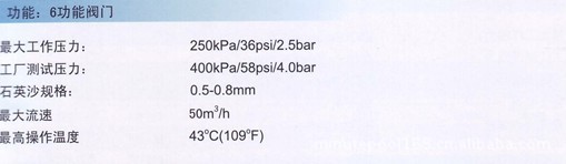 NEW:特點:用玻璃纖維和聚酯工藝制造透明面蓋的設計便于觀察沙缸內(nèi)的沙層頂置式布水器使水流均勻分布到沙層排氣閥設置可輕便地排出過濾過程中導入的空氣獨特,耐腐蝕性物料可適應不同氣候環(huán)境特大式排沙/排水設計便于保養(yǎng)和維護簡易型底排水和多功能缸頭使操作簡便自如缸體表面經(jīng)防曬處理新式環(huán)形鎖制
