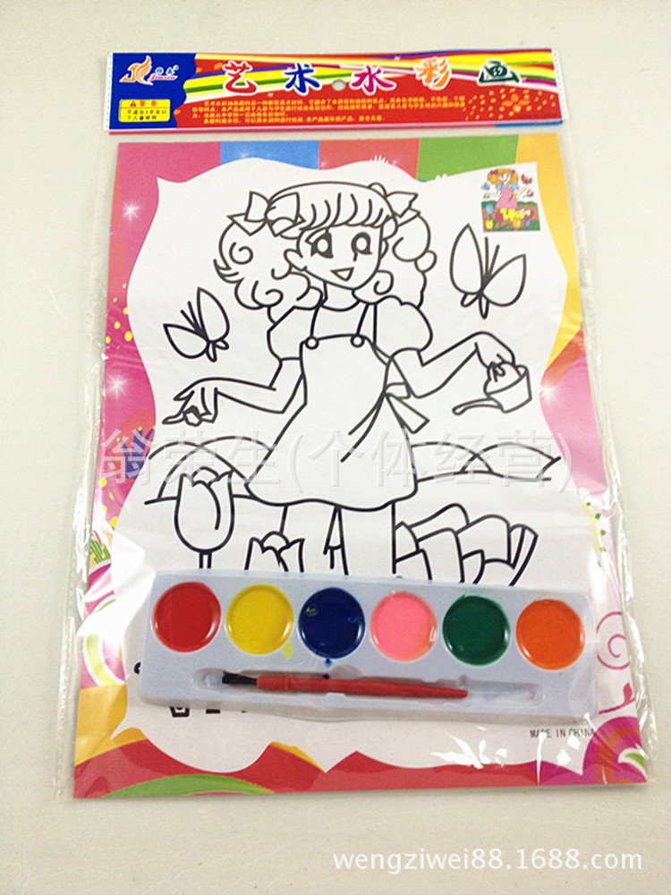 【配料】:每包2張不同圖。6色顏料,刷子1個(gè)