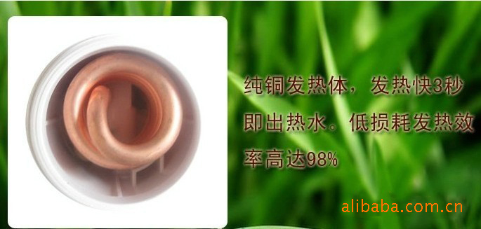 主要特點(diǎn): 雙重水電隔離,安全可靠。下進(jìn)水,6秒快熱,鍍亮鉻環(huán)裝飾,外形高雅美觀,樹葉式手柄設(shè)計,冷熱水雙用,像普通水龍頭一樣,使用方便。配漏電保護(hù)器。