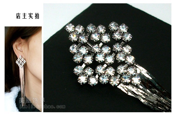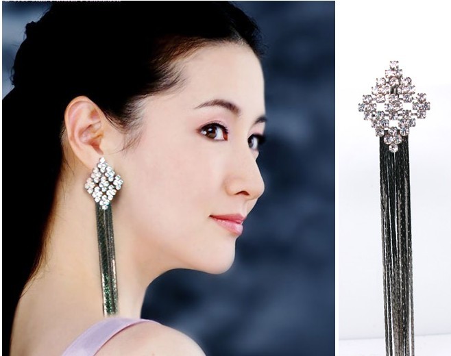 新娘超閃時尚個性滿鉆菱形流蘇長耳環(huán) 無耳洞螺絲耳夾 189