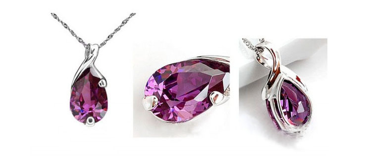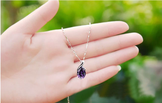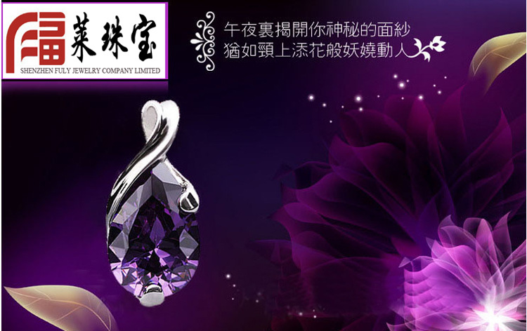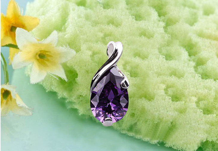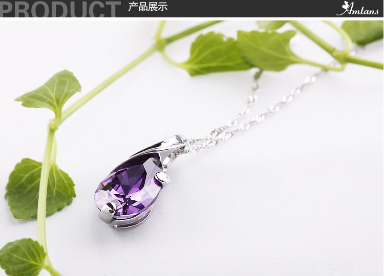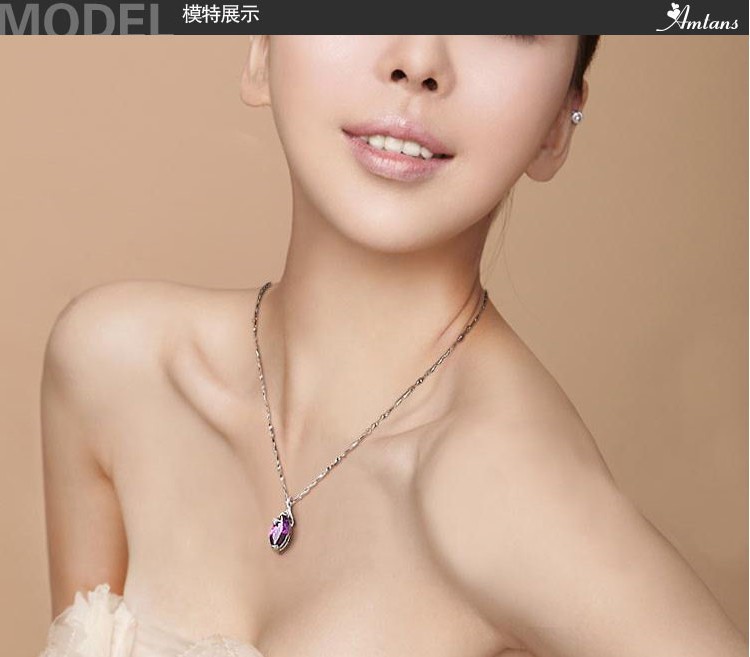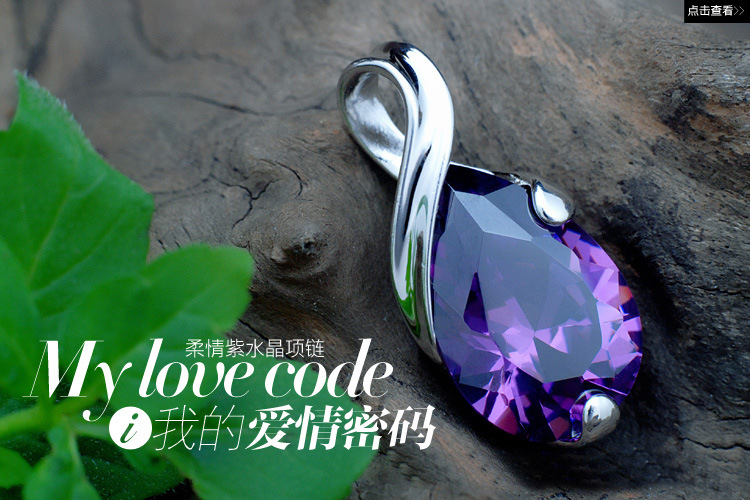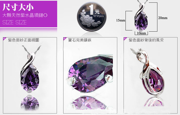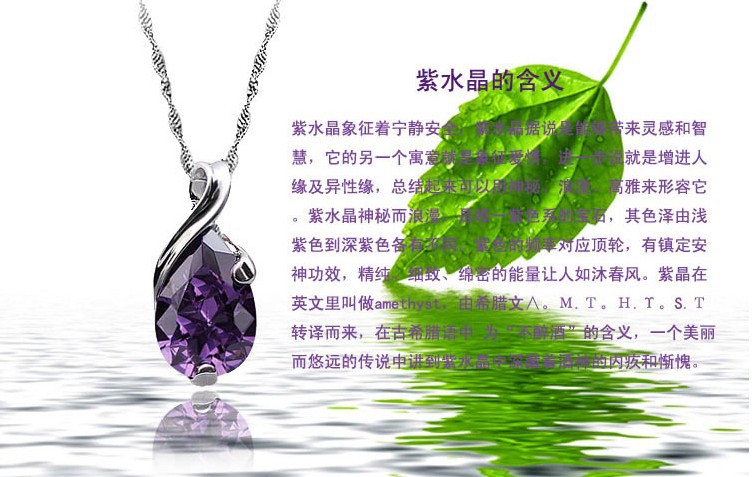 淘寶專賣批發(fā) 925純銀女款天使淚紫水晶吊墜 鍍白金項(xiàng)鏈 天使之淚