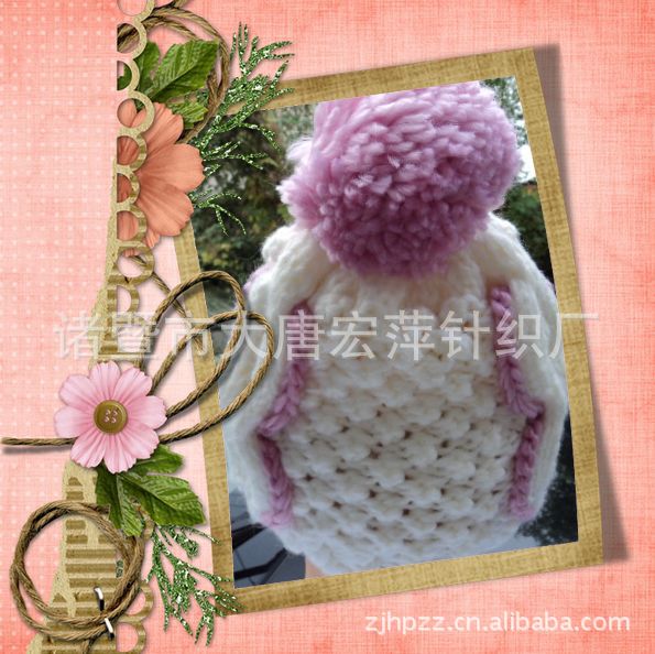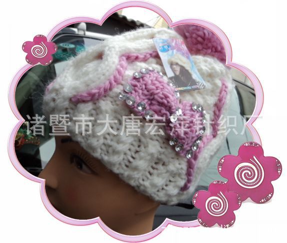 團(tuán)購(gòu)包郵純手工編織韓版蝴蝶結(jié)大毛毛球毛線帽