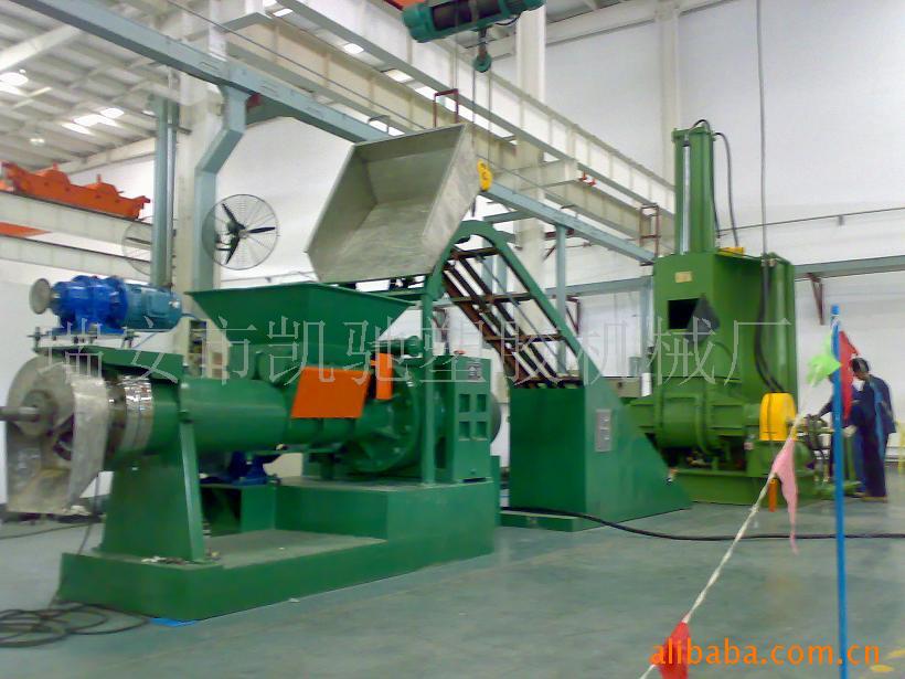 雙挽式橡膠高速造粒整套設備 本機是核心機構。置于機筒進料口上部的雙螺槳喂料,吃料能力強,迫使經密煉機塑煉后的團狀物料強制進入螺桿旋槽內,在螺桿轉動下向前推進,當物料逐漸進入模腔時內部壓力隨之增加,經口模形成連續(xù)、密實的小圓柱條擠出成型。后配模面熱切風冷式切粒裝置。主電機與切粒電機采用變頻調速,能調節(jié)物料的速度與粒子的均勻度。機筒螺桿均采用38CrMoAlA優(yōu)質合金鋼,經氮化處理,硬度高,耐磨耐腐蝕。匹配高強度硬齒面減速器,齒輪(軸)采用高強度合金鋼經滲碳淬火恒溫磨齒加工,齒輪精度高、硬度高。配置有高承載能力的推力座,承載能力高,傳動平穩(wěn)、噪音低、效率高等特點。