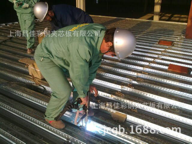 E、鋪設(shè)時(shí)每片樓承板以確實(shí)寬度定位,并以片為單位,邊鋪設(shè)邊定位方式作業(yè)。