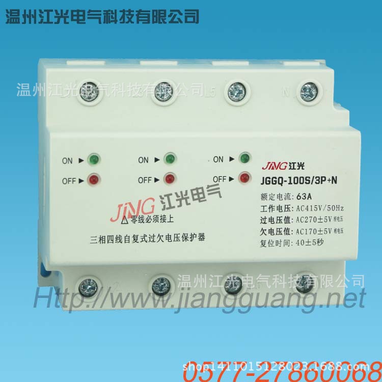 JGGQ-63自復(fù)式過欠電壓保護(hù)器采用控制線路采用高速微低功耗處理器為核心、磁保持繼電器為主電路、模數(shù)化標(biāo)準(zhǔn)設(shè)計(jì),當(dāng)供電線路出現(xiàn)過電壓、欠電壓時(shí),保護(hù)器能在持續(xù)高壓沖擊下迅速、安全地切斷電路,避免異常電壓送入終端電器造成事故的發(fā)生,當(dāng)電壓恢復(fù)正常值,保護(hù)器將在規(guī)定時(shí)間內(nèi)自動接通電路,確保終端電器在無人值守情況下正常運(yùn)行。