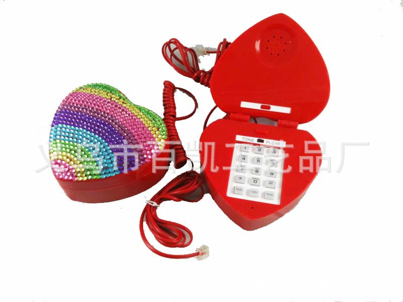 鑲鉆電話上市 精美禮品電話 彩虹水晶桃心電話