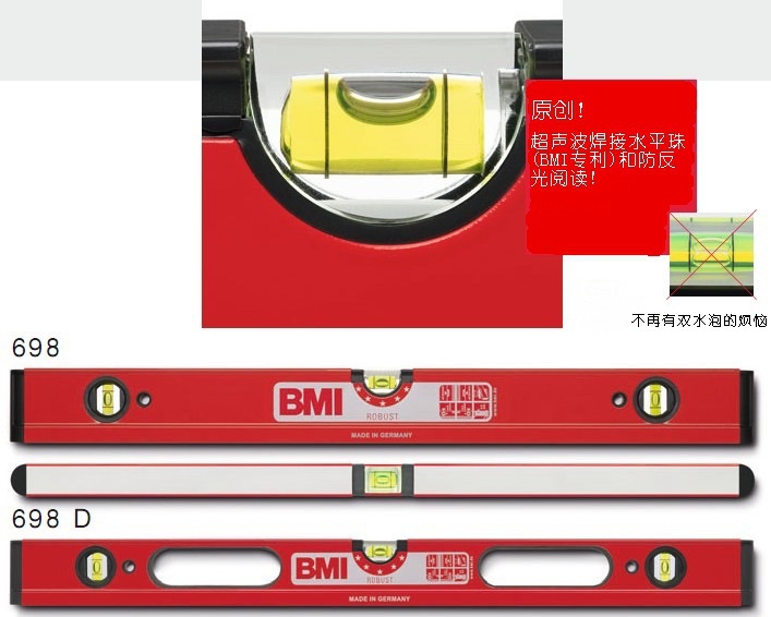 • BMI原創(chuàng)管式半球形水平面水平珠,帶放大功能,應(yīng)用于倒向位置測量,而且可以提供卓越的閱讀效果