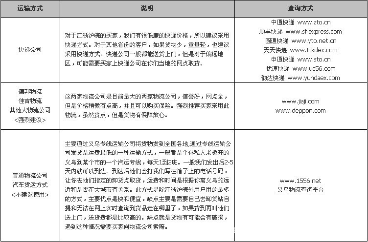 正如我們服務(wù)宗旨所言:我們追求5星級(jí)滿意度和高回頭率,期待同每一個(gè)客戶進(jìn)行長(zhǎng)期合作。所以任何貨物的破損和缺失都不是我們?cè)敢饪吹降?。盡管我們盡可能包裝好您的貨物,但是在運(yùn)輸途中,尤其是長(zhǎng)途運(yùn)輸幾千公里的路程,有時(shí)候難免會(huì)出現(xiàn)一些破損,對(duì)于這種情形我司將不承擔(dān)賠償和退換貨的責(zé)任,因?yàn)槲覀兺耆珶o(wú)法控制快遞和物流公司。所以建議買家發(fā)貨時(shí)通知我們工作人員選擇德邦物流和佳吉物流公司,這兩家信譽(yù)高并且可以購(gòu)買破損保險(xiǎn)來(lái)規(guī)避運(yùn)輸?shù)娘L(fēng)險(xiǎn)。