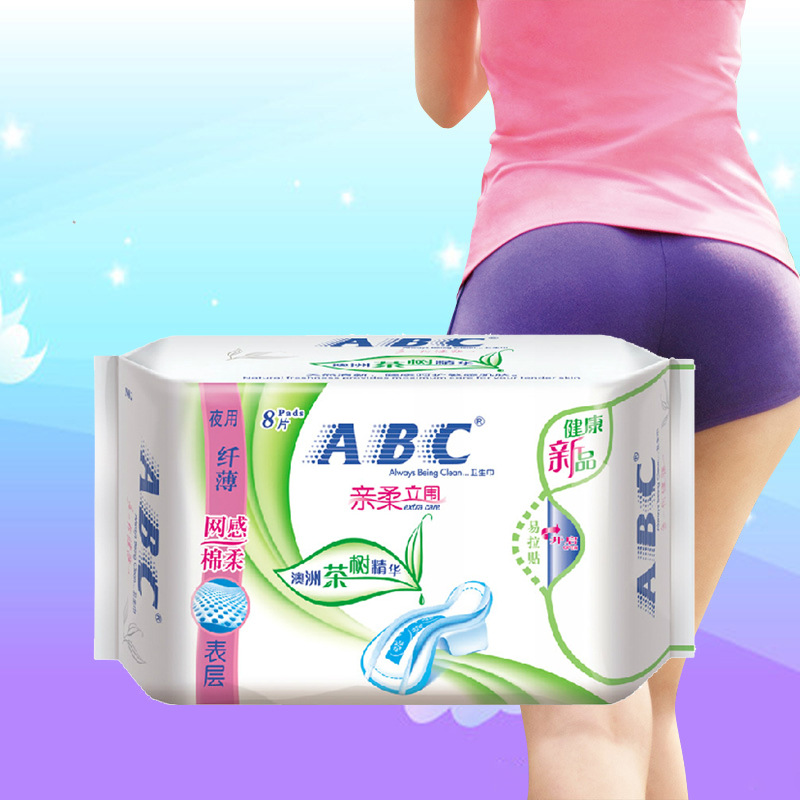 ABC衛(wèi)生巾夜用纖薄棉柔排濕表層280mmx8片