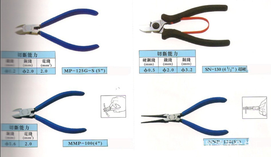 斜口鉗 ,型號:MPN-100(4”)切斷能力-樹脂(塑料):3.0MM