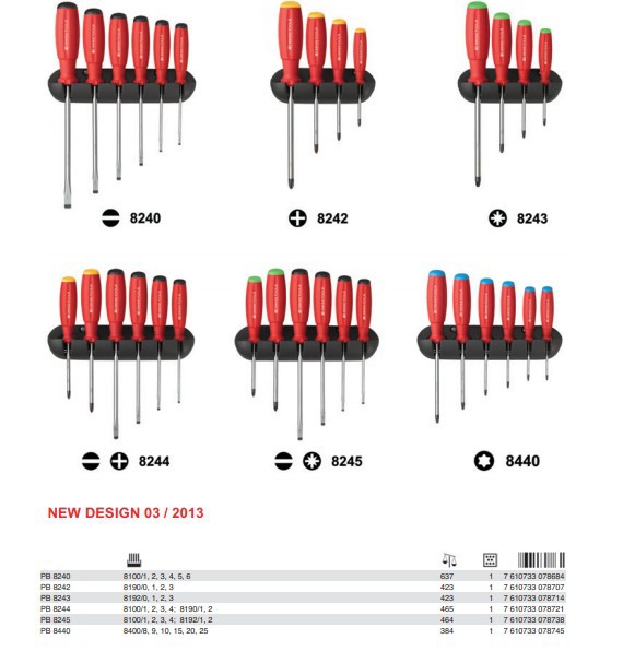 供應(yīng)原裝進(jìn)口瑞士PB 掛墻式4支套裝十字螺絲刀組合PB 8242