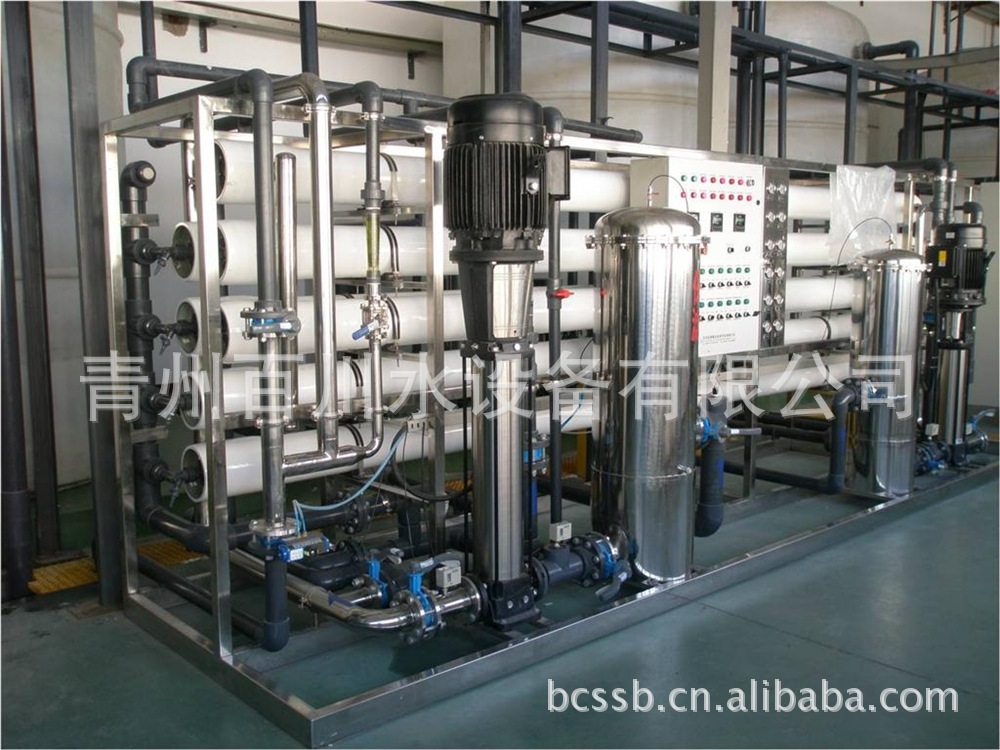 作為純凈水生產(chǎn)的依托是非常重要的。所以要生產(chǎn)純凈水一定是要選擇原水水質(zhì)比較好的地方。如山泉、深井等。在這里牽扯到一個非常重要的指數(shù)就是“電導(dǎo)率”。一般而言電導(dǎo)率,越低。水越純凈。現(xiàn)在采用的水處理工藝都是采用的反滲透系統(tǒng)。經(jīng)過處理后的水一般能達到90%——99%的脫鹽率。下面我介紹一下這個系統(tǒng)的組成部件。