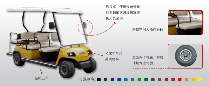 貨號20v00001備注電機48伏他勵、3.7kw美國ADC品牌電池6個8伏美國Fullriver(免維護)充電器直流電48伏外置充電機控制器穩(wěn)定250安培CurTis1266加速器霍爾感應加速器CurTis轉向雙向齒輪齒條轉向系統(tǒng),自動間隙補償功能維勒科前部避震獨立支撐減振器液壓彈簧后部避震獨立支撐減振器液壓彈簧后橋無級變速后橋意大利GRAZIANO(同美國CLUB CAR高爾夫球車原配后橋)剎車自調后輪鼓式機械剎車及電剎車雙重功能下坡可實現(xiàn)限速,不超過24KM/H框架/底盤高強度鋼管焊接結構電泳防銹烤漆處理車身“PP”合金汽車專用工程材料同美國CLUB CAR球車車身材料起動電鎖 原裝美國進口前后檔開關 原裝美國進口前輪胎/后輪胎18x8.50-8/18x8.50-8美國CARLISLE氣壓34PSI 長3400mm 寬1200mm 高1900mm 底盤離地高度114mm 輪胎面間距(前/后)870mm/980mm 凈重(不計電池)310kg 限載人數(shù)6人 向前速度18-24 km/h 制動距離≤2.5 m 轉彎半徑3.9m 爬坡能力(滿載)安全爬坡:30% 續(xù)駛里程(空載)90~100km