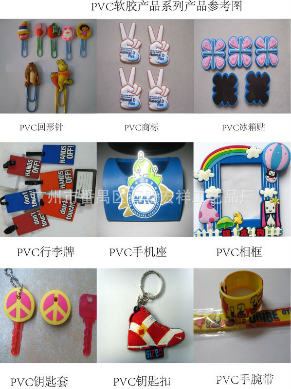PVC軟膠系列:PVC軟膠匙扣、PVC相架、PVC手機座、PVC商標(biāo)牌、PVC行李牌等.