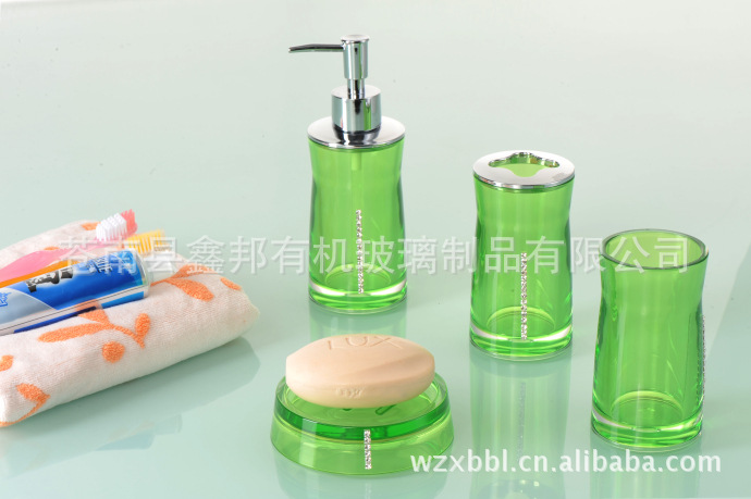 進(jìn)口亞克力 加厚高檔衛(wèi)浴四件套 鑲鉆透綠