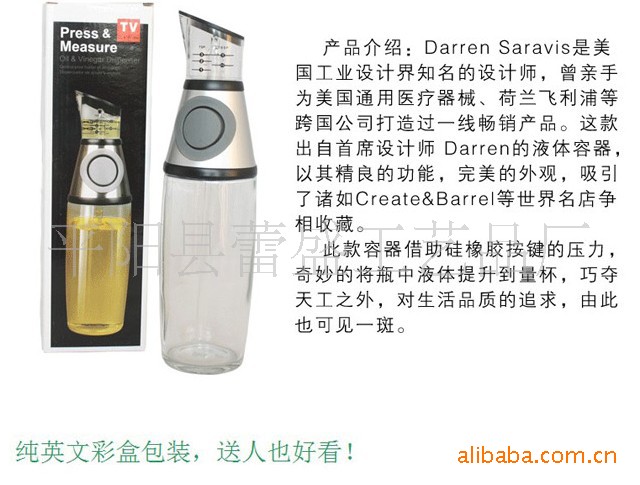 油瓶已更新換代了,本款可計量油瓶都有全新改進,能更好的把握油量,密封更佳,美觀依然。 聯系電話: QQ:3 1