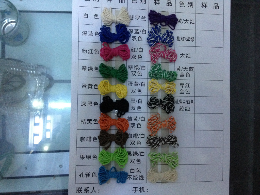 你好, 我們是一家專業(yè)生產(chǎn)粽子扎線,經(jīng)國(guó)家相關(guān)部門(mén)批準(zhǔn)注冊(cè)的企業(yè)。我廠以雄厚的實(shí)力、合理的價(jià)格、優(yōu)良的服務(wù)與多家企業(yè)建立了長(zhǎng)期的合作關(guān)系。熱誠(chéng)歡迎各界前來(lái)參觀、恰談,我們會(huì)以優(yōu)良的服務(wù),可靠的質(zhì)量滿足您的需求。也可做某一地區(qū)代理。我廠主要生產(chǎn)銷(xiāo)售10支4股純白絞線,梅紅白,果綠白,黑白,翠綠白,天藍(lán)白,黃白,桔黃白,孔雀藍(lán)白等各種4股花色絞線,全紅,全果綠,全黑,全翠綠,全天藍(lán),全黃,全桔黃,全孔雀藍(lán)等各種4股全色絞線。21支8股【根】純白絞線,梅紅白,果綠白,黑白,翠綠白,天藍(lán)白,黃白,桔黃白,孔雀藍(lán)白等各種8股花色絞線,全紅,全果綠,全黑,全翠綠,全天藍(lán),全黃,全桔黃,全孔雀藍(lán)等各種8股全色絞線。扎線的顏色多樣,可以更好的區(qū)分各類粽子,再則棉線質(zhì)地較軟,在滿足牢度的同時(shí),對(duì)包粽子的工人的手傷害較其他扎繩要小很多,另外我廠也可以來(lái)樣定做貴公司的產(chǎn)品,有意者可以連系我們,聯(lián)系電話【0】沈先生 0573 良好的質(zhì)量與優(yōu)質(zhì)的服務(wù)始終是我廠的宗旨,希望我們能成為朋友,互利雙